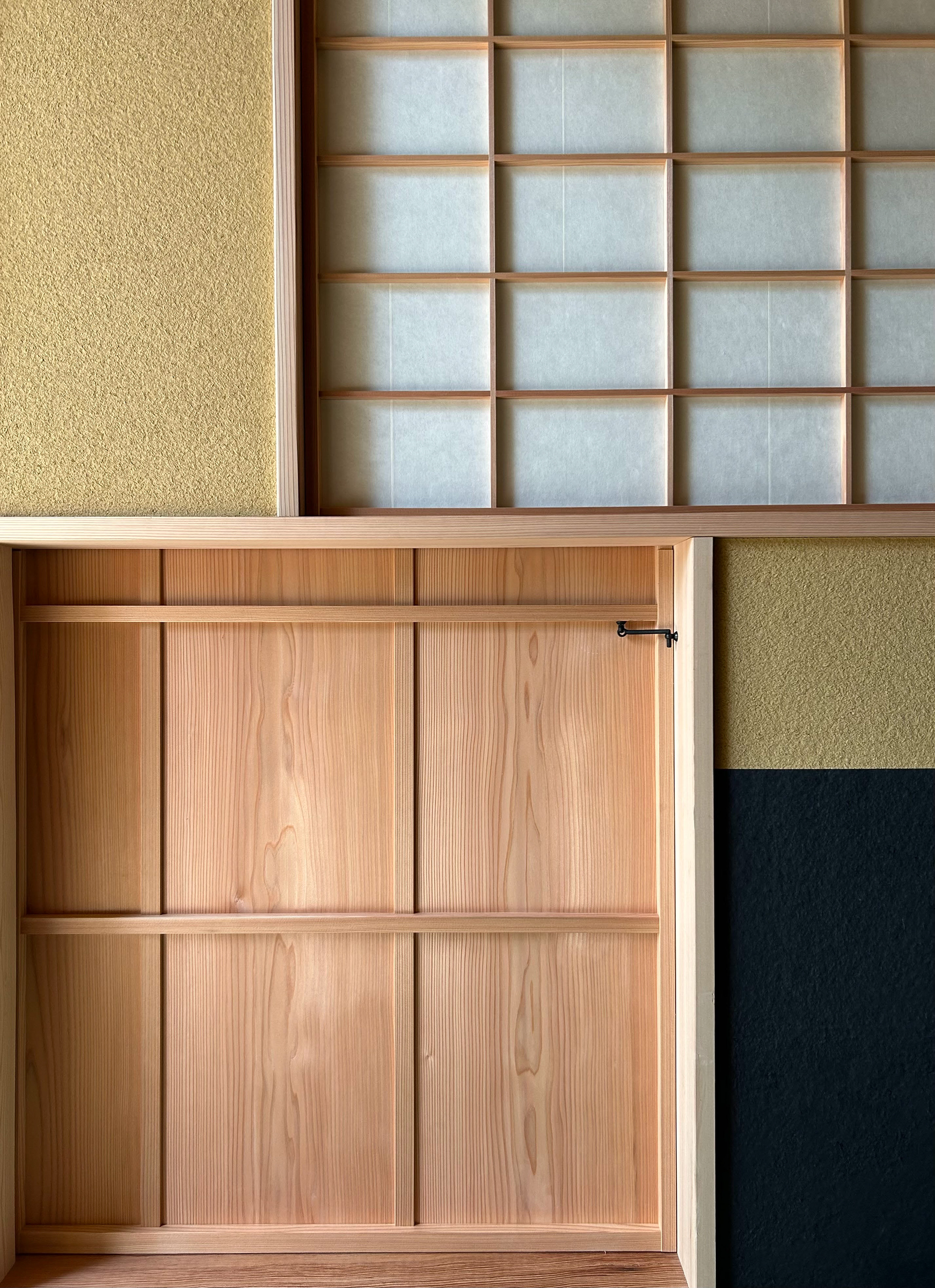 部材の選定や意匠の構成はもちろん、竹の節の向き、障子の継ぎ目に至るまで、微細な納まりを綿密に計画。先人たち